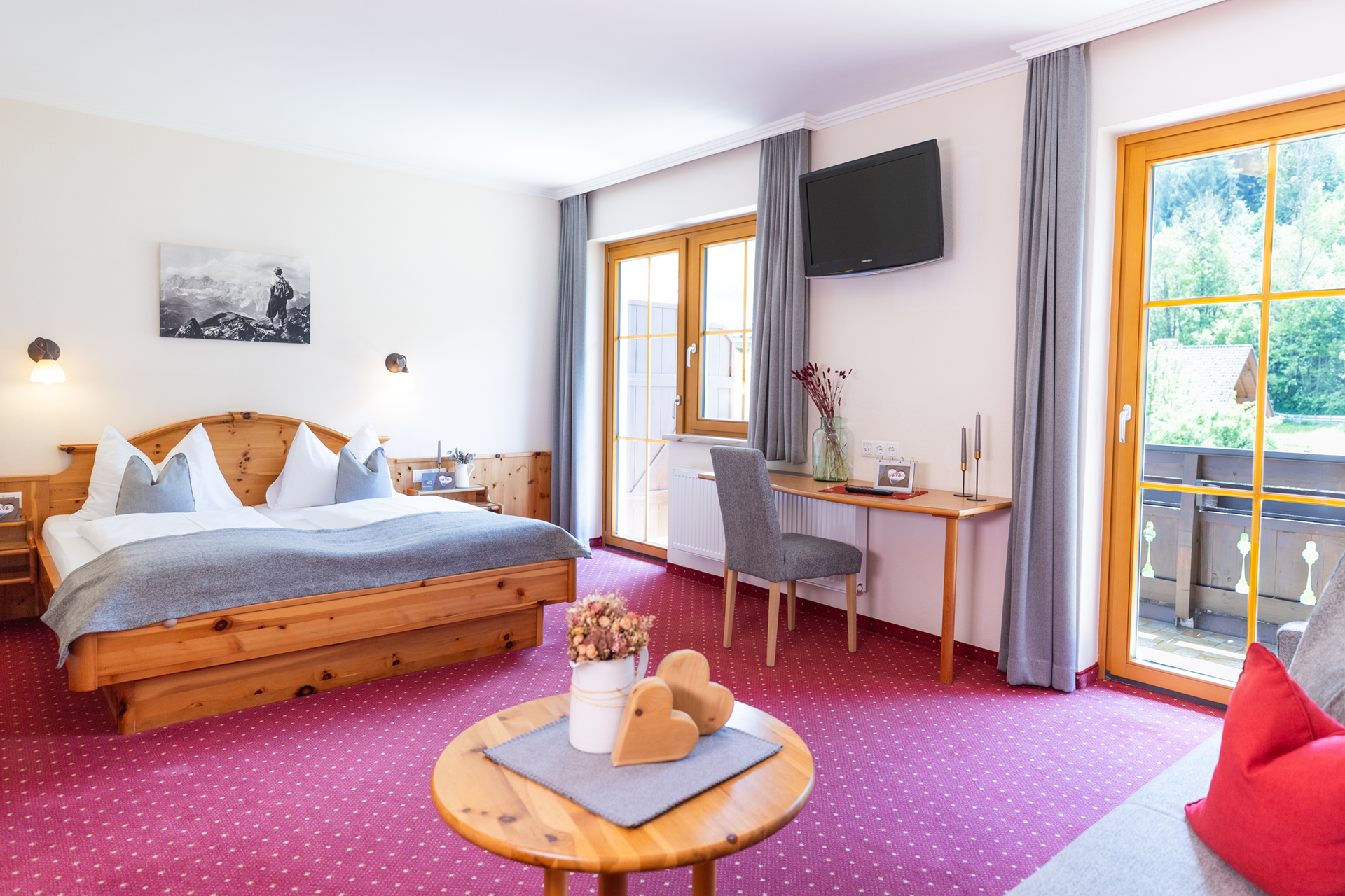 Our “Glückspilz” double room is a spacious room with a south-facing balcony