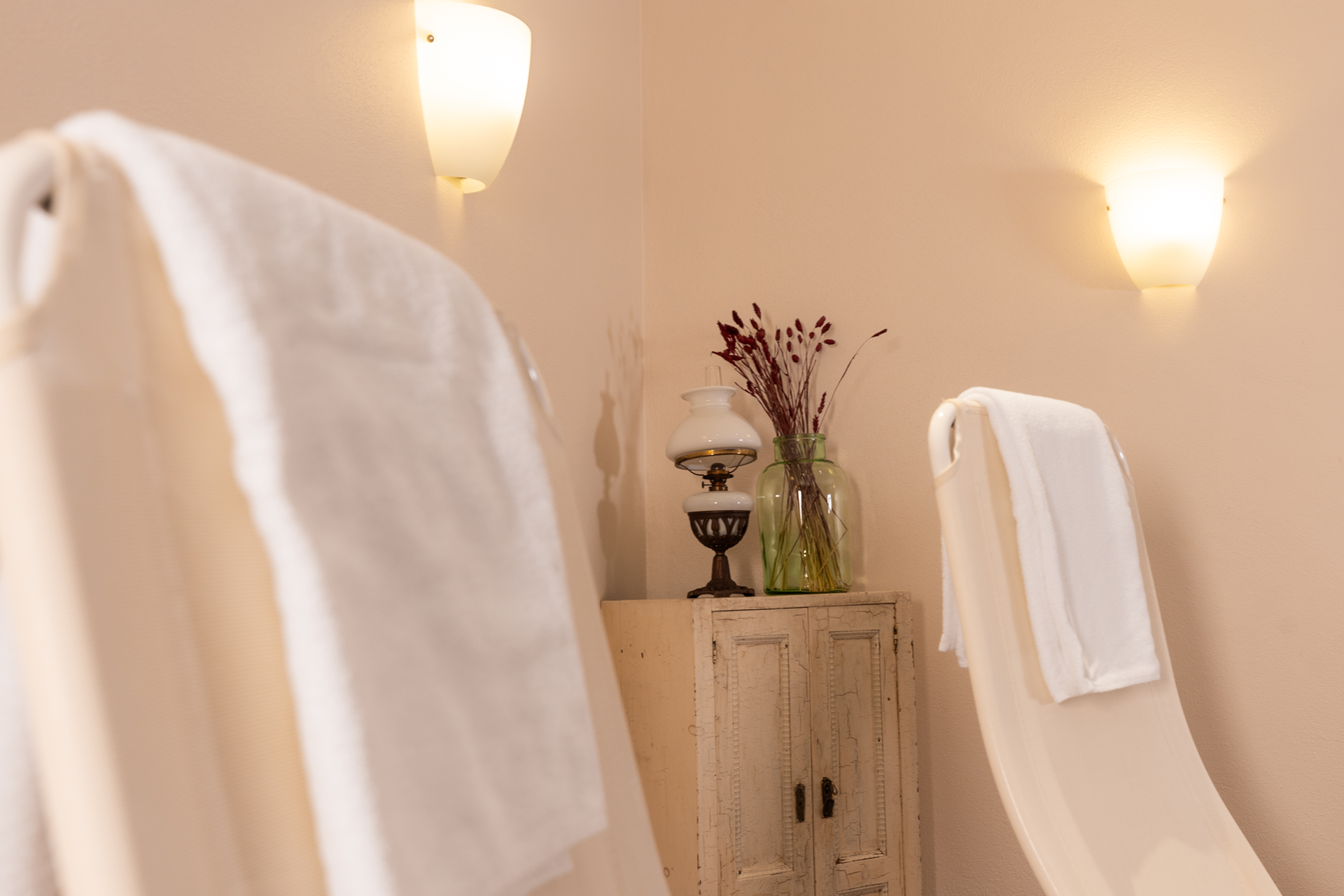 - Ruheraum mit Entspannungsliegen und Wärmebank